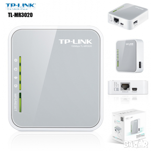 Рутер безжичен Router TP-Link TL-MR3020 Wi-Fi N 3G / 4G 150Mbps компактен преносим рутер