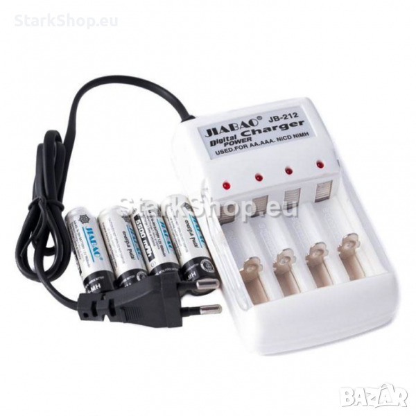 Практично зарядно за батерии с подарък 4бр. батерии ААА. Подходящо за литиево-йонни батерии АА и AAA.