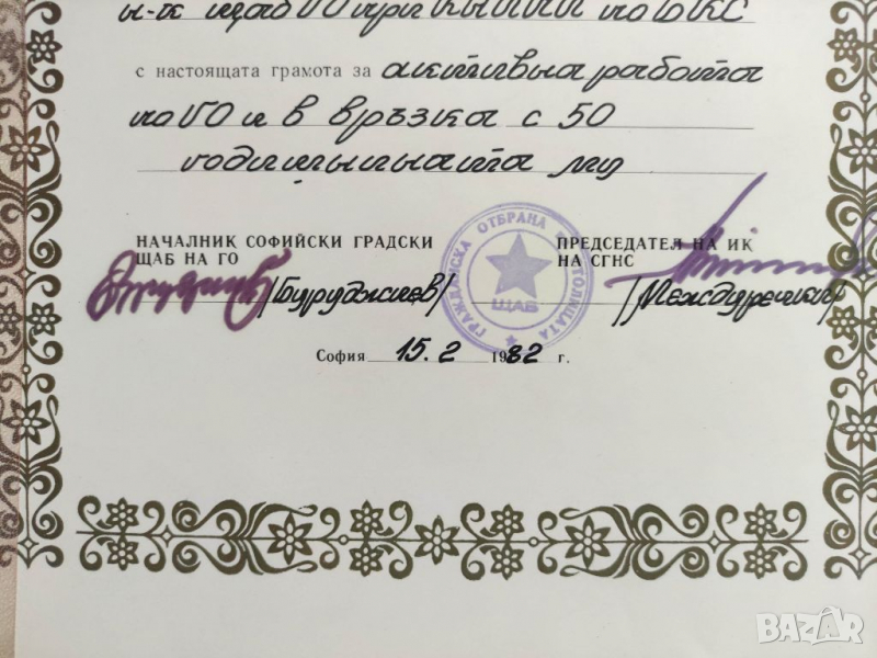 Продавам Грамота София ,Гражданска отбрана, Междуречки, снимка 1 - Антикварни и старинни предмети - 36274579 Продавам Грамота София ,Гражданска отбрана, Междуречки, снимка 2 - Антикварни и старинни предмети - 36274579 Продавам Грамота София ,Гражданска отбрана, Междуречки, снимка 3 - Антикварни и старинни предмети - 36274579 1/3
