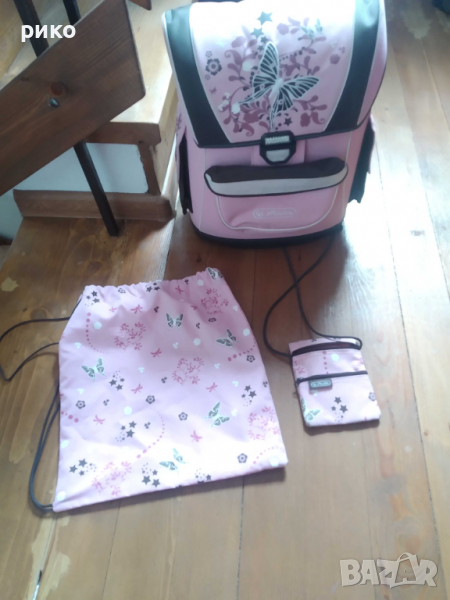Ученическа раница на немската марка Herlitz .Закупена е от Германия в комплект .Раницата е запазена без скъсано и протрито