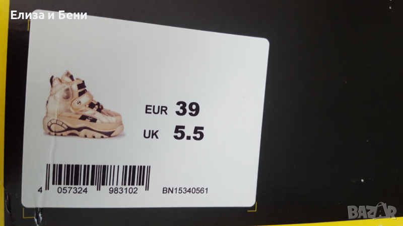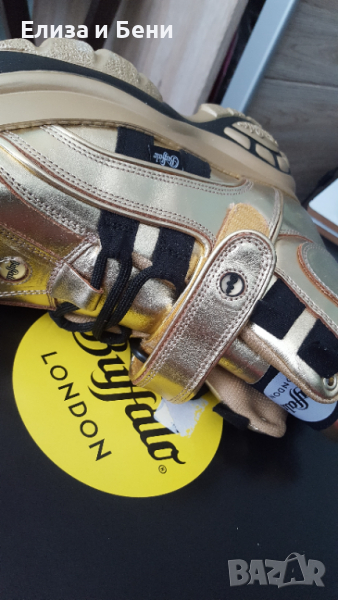 екстравагантни кецове естествена кожа с платформа, с кутия Buffalo gold platform sneakers high top → Обява 36282776