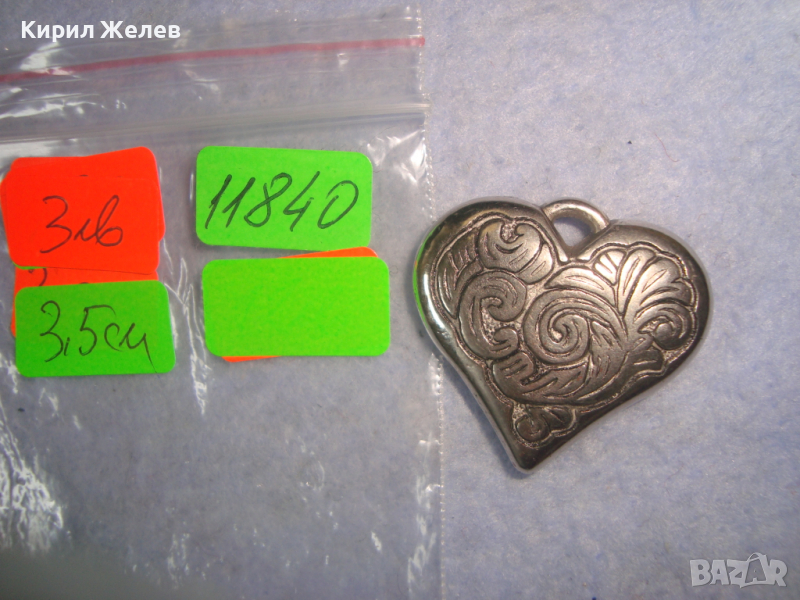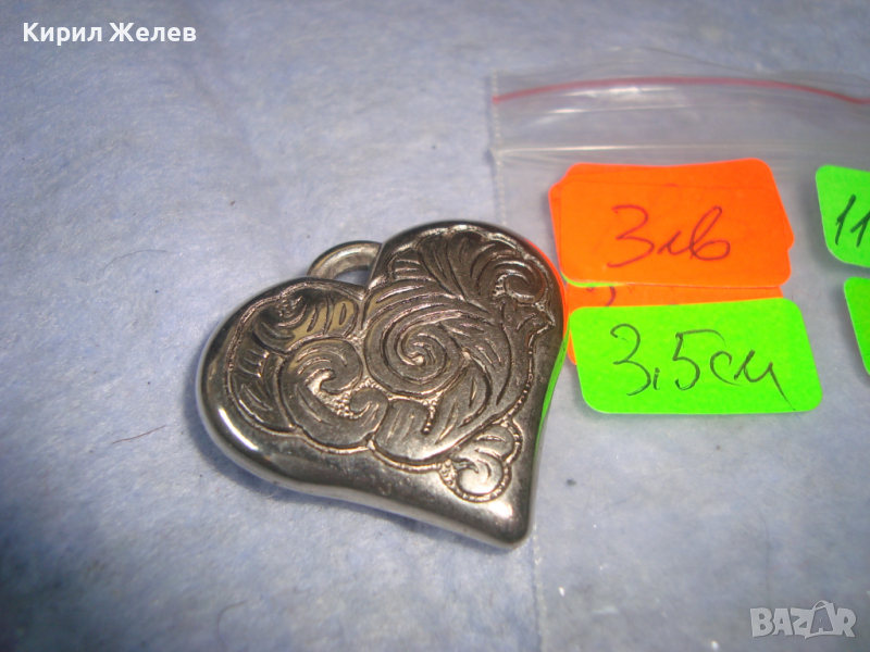 СЪРЦЕВИДЕН ДВУСТРАННО РЕЛЕФНО ЕТНО ОРНАМЕНТИРАН СРЕБРИСТ МЕДАЛЬОН 11840