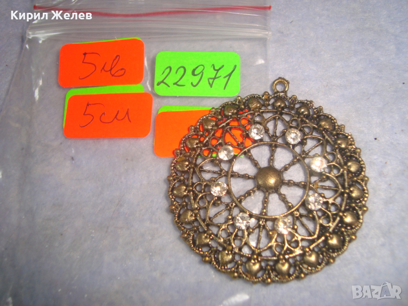 КРАСИВ МЕСИНГОВ АЖУРЕН АРТ МЕДАЛЬОН с ИНКРУСТИРАНИ КРИСТАЛИ 22971