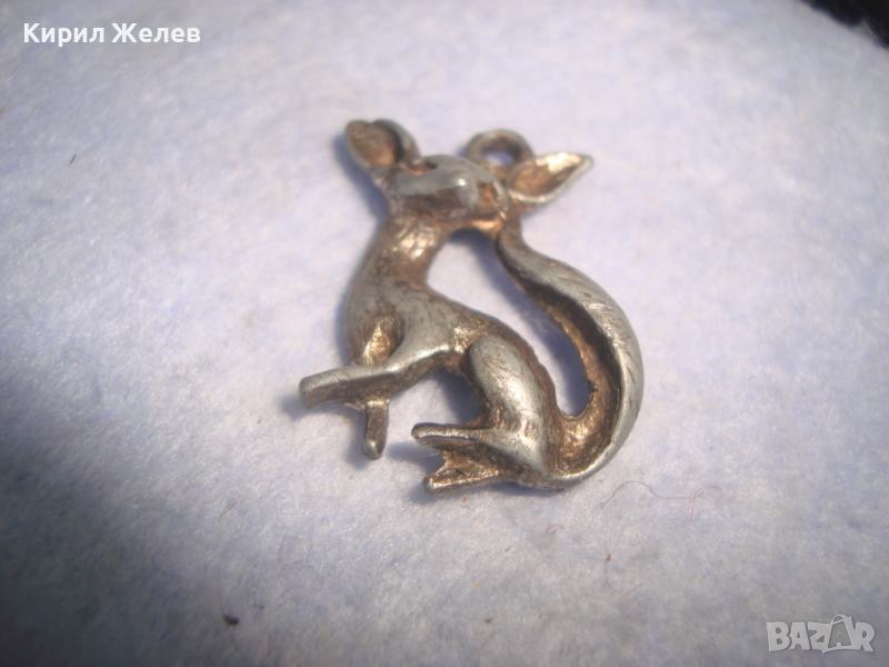 МИНИАТЮРНА ОЛОВНА с ПОЗЛАТА ЛИСИЦА - АРТ ДЕКО ФИГУРАЛЕН ПЕНДАНТ МЕДАЛЬОНЧЕ МАЙСТОРСКА РАБОТА 26415