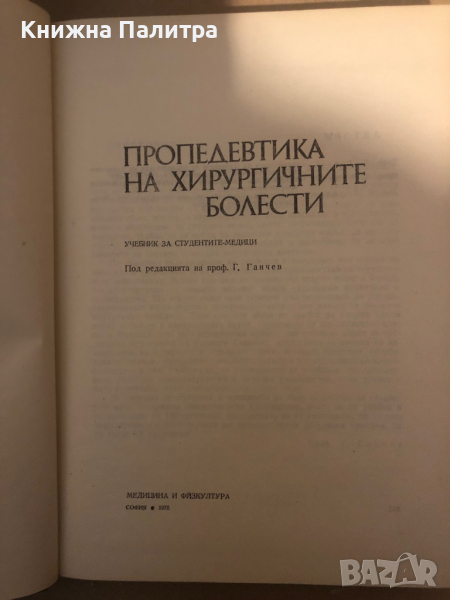 Пропедевтика на хирургичните болести Учебник за студенти-медици Ганчо Ганчев, Тотьо Андреев, Йордан → Обява 36285326