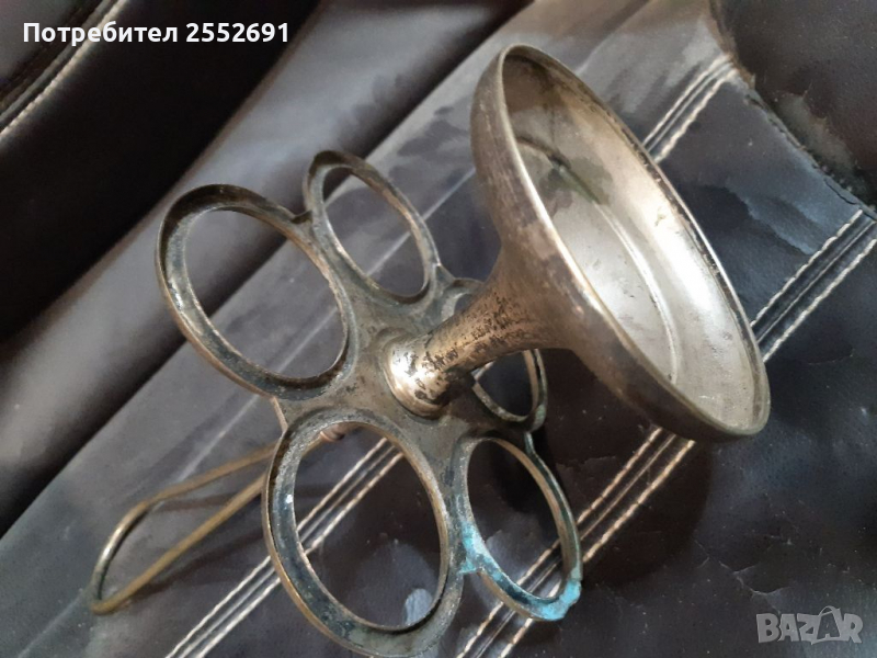 Старинен поднос за чаши. Бил е посребрен. Височина- 27см.