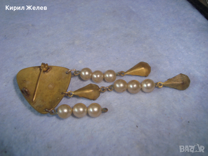 СТАРА БРОНЗОВА ПЕРЛЕНА АРТ НУВО БРОШКА с ГОЛЕМИ ЮВЕЛИРНО ФАСЕТИРАНИ ПЛАНИНСКИ КРИСТАЛИ 26149