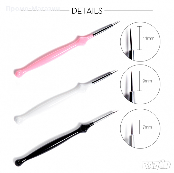 Комплект тънки четки за декорация и арт маникюр с ергономични дръжки. Супер удобни за работа.