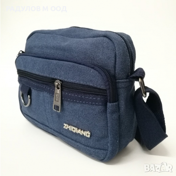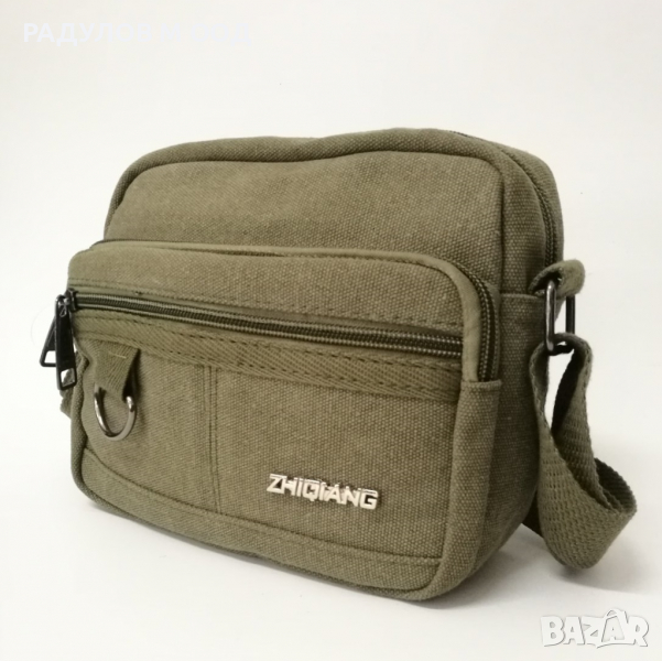 Мъжка чанта от брезентов плат за през рамо се предлага в следните цветове: черно, синьо, каки и зелен.