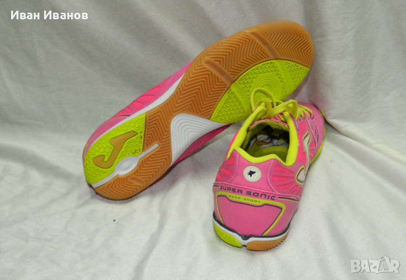 Обувките за футзал Joma Supersonic SUPEW.410.PS са обувки за футзал, изработени от комбинация от горна част от микрофибър и гумена подметка, които са проектирани да бъдат спортни. Тези обувки са проектирани с Joma soft tech технология в горната част на подметката, междинна подметка от PU, подплатена яка и омекотяване, за да осигурят удобно движение, гъвкавост и максимален контрол на топката, необходими при условия на футзал на закрито.