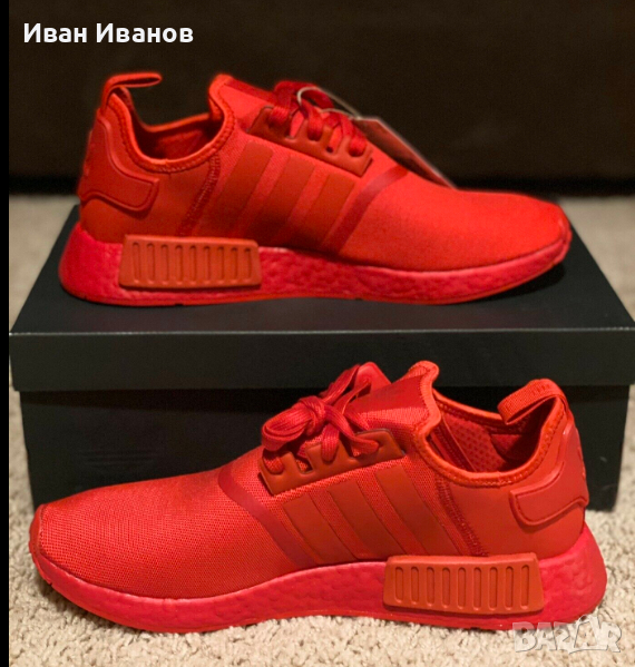 Чисто нови , с кутия Модерни и удобни , и цвят с който няма да останете незабелязани Актуален модел , доскоро по магазините беше около 300 лева Един от водещите продукти на марката adidas - NMD_R1. Обувки с интересен дизайн, издържани в ярко червено. Имат лека горна част, изработена от проветрива текстилна материя. В комбинация с текстилния хастар, тя гарантира свежи условия и вентилация на стъпалата. Подметката е от решаващо значение за удобството на модела. Тя е изработена от два слоя. Първият от тях е гъвкава пяна Boost, а другата - от устойчива на износване гума. Елементите от материал TPU красят страничната част на подметката.Горна част: текстил PrimeknitВътрешност: текстилПодметка: пяна Boost, гума, елементи TPU
