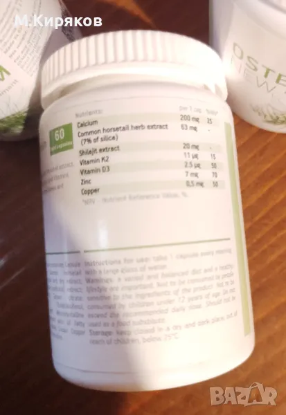 Тази биологично активна хранителна добавка помага да се стимулира растежа на костната тъкан, да се подобри структурата на костите, повишавайки минералната им плътност, и да се предотврати отмиването на калция от костите и зъбите. Стимулира синтеза на колаген, увеличава еластичността на костната структура, намалявайки риска от счупване.