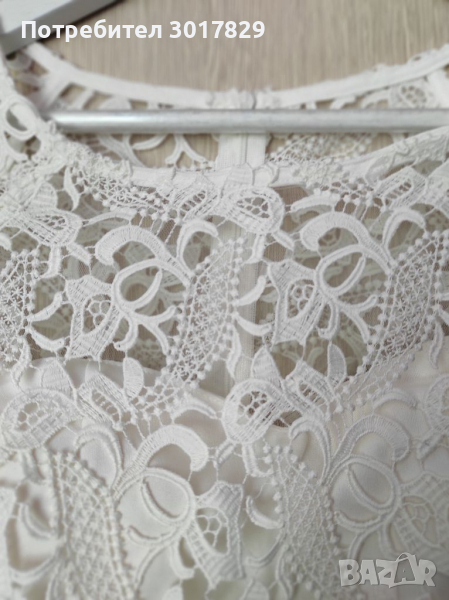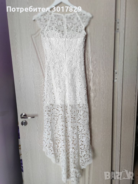 Обличана веднъж на бал. Рязана бродирана дантела, изключително качество.Може да се ползва и за булчинска рокля. При интерес ще измеря. Отпред е по къса100 см, отзад е до петите 150 см. Носена е с обувки с камъчета размер 36 от друга моя обява.