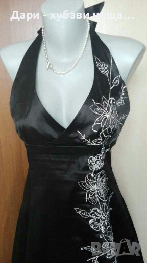 Черна рокля от сатен, гол гръб,със сребриста бродерия🍀❤M,M/L❤🍀арт.4106