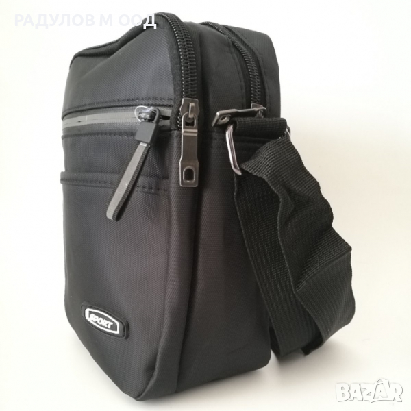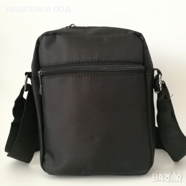Практична мъжка чанта от текстил с регулируема дръжка за през рамо.