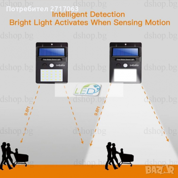 Датчика за движение се активира, само след като установи движение и след около 10 секуди се изключва автоматично.