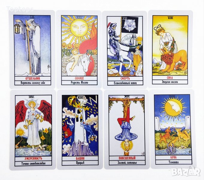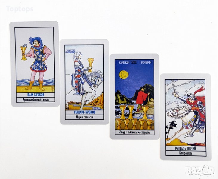 Продавам нови таро карти: - 78 таро карти - Radiant Russian RW Tarot. Размерът им е 10,1см х 6см, на руски език са.