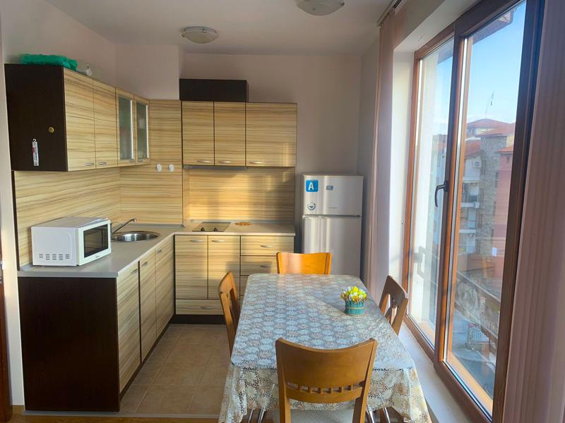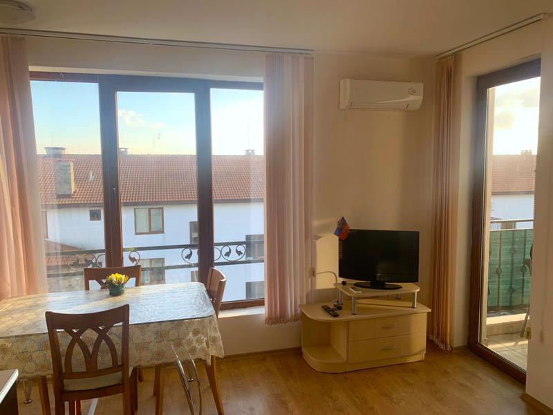 Прекрасен двустаен апартамент в емблематичният комплекс Аполон гр. Несебър.К-са на 150 м. от плажа. Апартаментът с площ 65 кв.м. Състои се от а дневна с кухненски бокс, спалня, баня с тоалетна и тераса. Продава се обзаведен и разполага с всичко необходимо. Комплексът разполага: басейни, детски басейни, детски площадки, ресторанти, бар, магазини,тенис корт,СПА, охрана, паркинг.