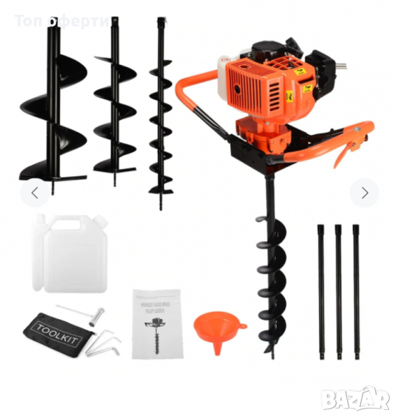Предлагаме на Вашето внимание бензинов моторен свредел с двутактов двигател 52CC с въздушно охлаждане.