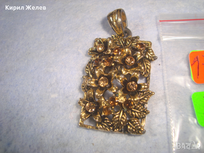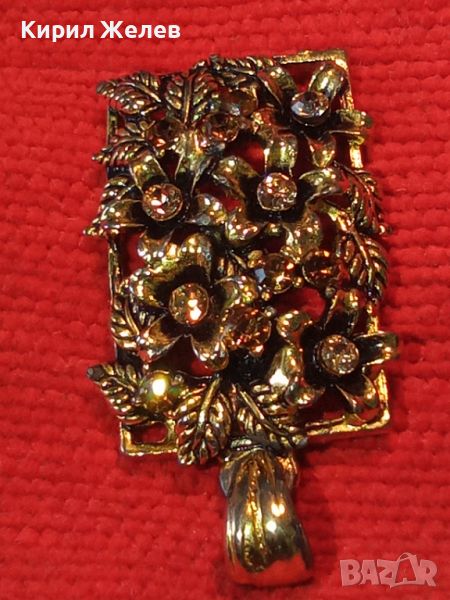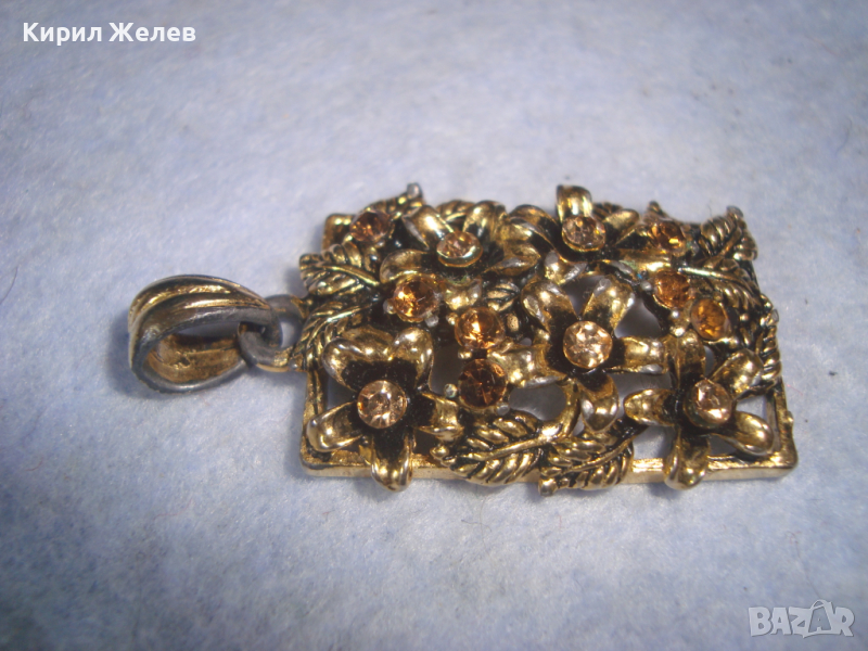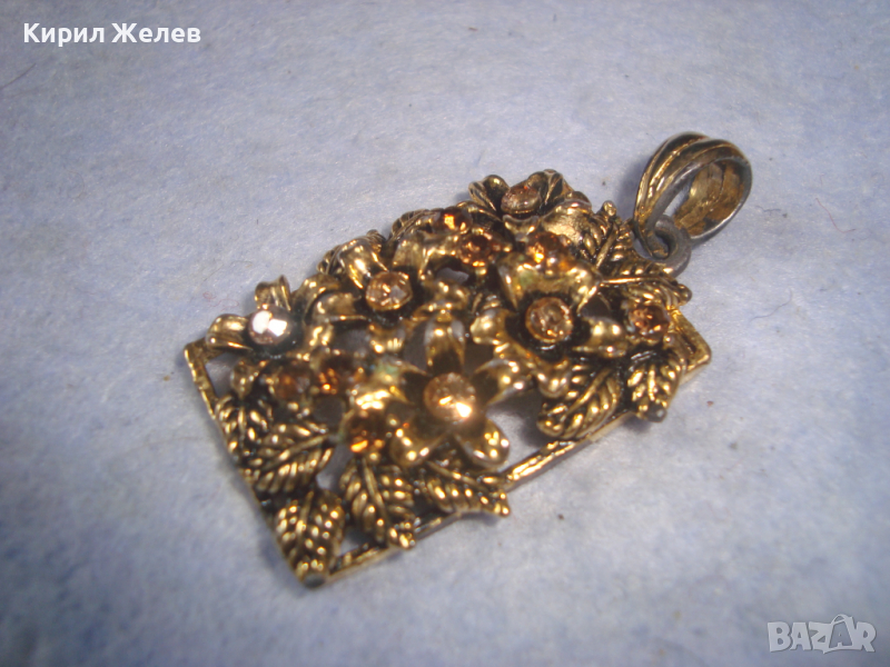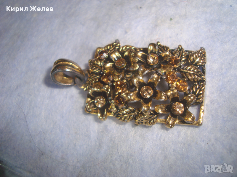 СКЪПОЦЕНЕН ФЛОРАЛЕН КРАСИВ ВИНТИДЖ ПОЗЛАТЕН АРТ ДЕКО МЕДАЛЬОН с КАМЪНИ ЦИТРИН 26064