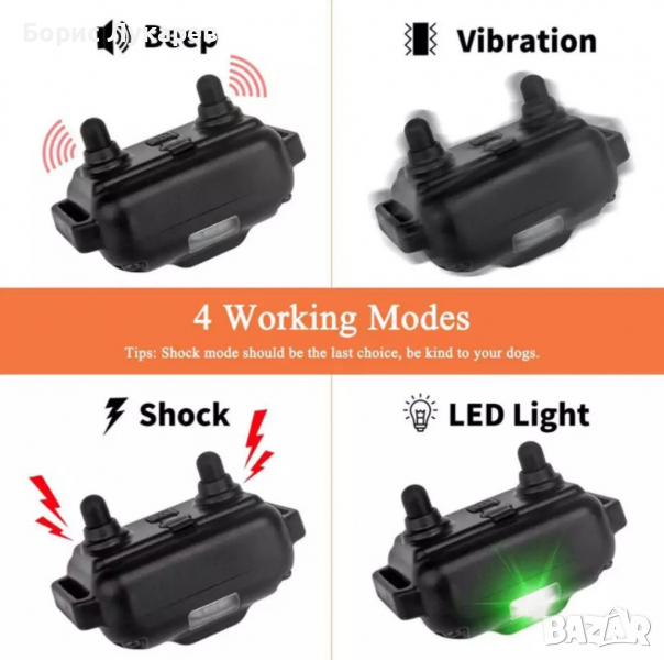 -3 режима на обучение: звук/вибрация/електрошок.
