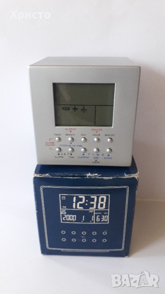 Продавам часовник антикварен, куб, марка Рееко Reeko, дизайнерски, будилник, календар, произведен и внесен от Германия в края на миналия век. Качествена пластмаса, работи с батерии 2xAAA (батериите не са включени в цената). Размери: 6,9х6,9 см. Чисто нов, в оригиналната кутия, която не е 100% запазена. От частна колекция. Страхотен подарък. За ценители.