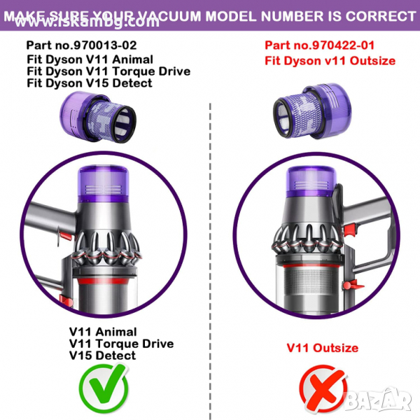 Филтъра е подходящ за моделите Dyson V11 Cyclone Animal / Absolute / Torque Drive, Dyson SV14 и Dyson V15