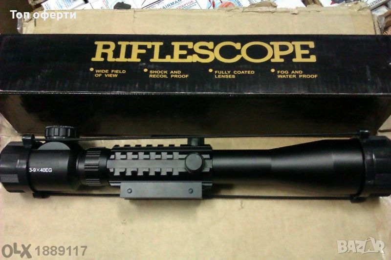ОПТИКА ЗА ПРИКРЕПВАНЕ КЪМ ПУШКИ С РЕГУЛИРУЕМО УВЕЛИЧЕНИЕ от 3 до 9. Оптически прицел с двуцветна подсветка за ловна стрелба и вградена просветка за работа при намалена видимост в два цвята, червен и зелен с по пет степени за регулиране на интензитета за всеки цвят. Оптиката е чудесна принадлежност при лов. Отлично качество, рационален дизайн и елегантен външен вид. Наблюдавате и фокусирате обекти намиращи се на голямо разстояние.