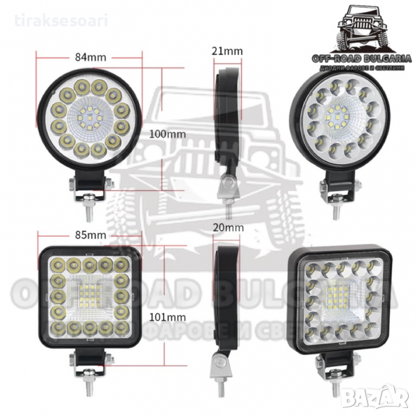 Кръгли и квадратни диодни фарове за ДЖИП LED диодни халогени фарове за Offroad офроуд светлини фарове Фарове за Мотокар Диоден