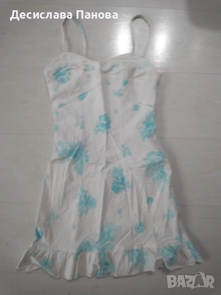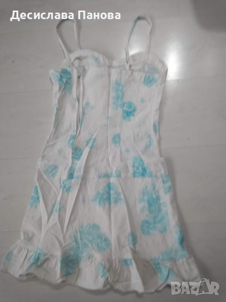 Много стилна секси лятна рокличка на цветя. Леко е разкроена отдолу. Размери: гръдна обиколка - 74 см, ханш - 80см, талия - 64 см, обща дължина от рамото - 76 см.