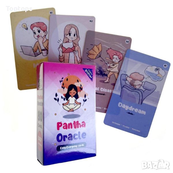 - 80 оракул карти - Pantha Oracle. Размерът им е 10,5х6,3см, колодата е създадена от Mate Horonumber.