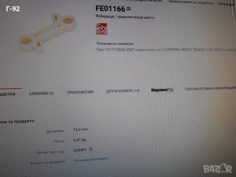 191711595A=01166**NEU**FEBI**VW**GOLF 2**ЩАНГА ЗА ИЗБИРАЧА НА СКОРОСТИТЕ **
