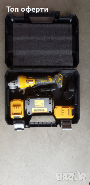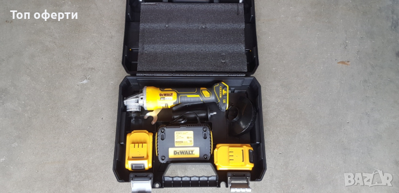 Акумулаторен ъглошлайф DeWALT 24V 5,0 Ah + 2 батерии и зарядно +5 диска за метал