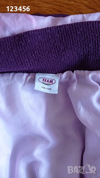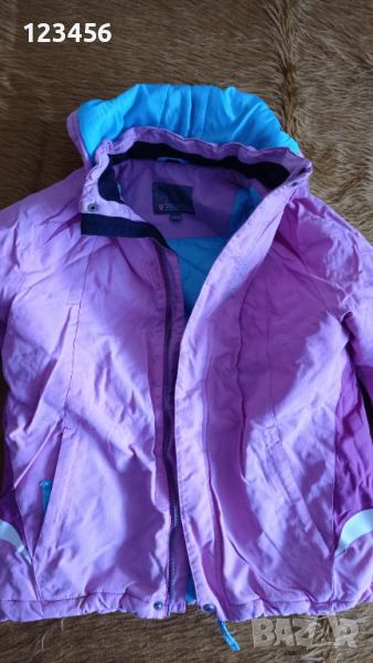 Цикламено-синьото яке е дебело, подходящо за ски, непромокаемо.