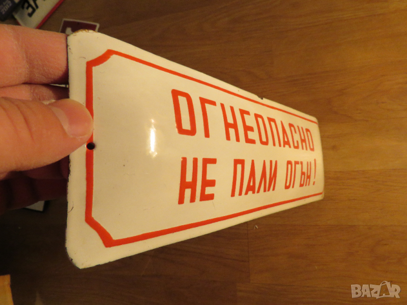 емайлирана табела ОГНЕОПАСНО НЕ ПАЛИ ОГЪН ! от 70те - за вашета фирма, офис, склад