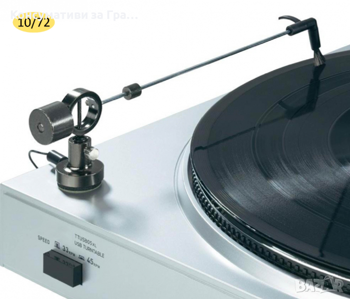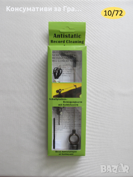 10/72 - Грамофонно Почистващо и Антистично рамо със стойка и карбонова четка със Заземителен кабел. Чисти праха преди преминаване на игличката и отнема статичното електричество отвеждайки го по заземителния кабел и намаля фоновия шум