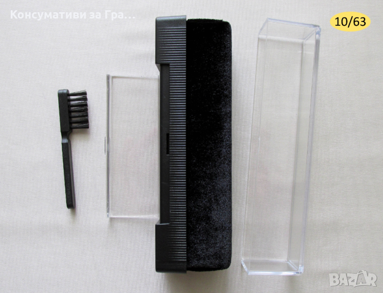 10/63 - Кадифена четка за почистване на грамофонни плочи в комплект със сапфирена четка за почистване на грамофонна игличка (в капака)