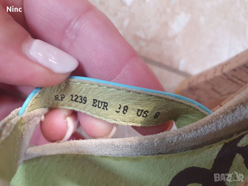 Сандалите са ориг.от ест.кожа.Токът е 12см.,предната част е 2.5см.Стелката е 25см.Цвета е сиво и синьо.Слагани са 2-3пъти.Нямат забележки.