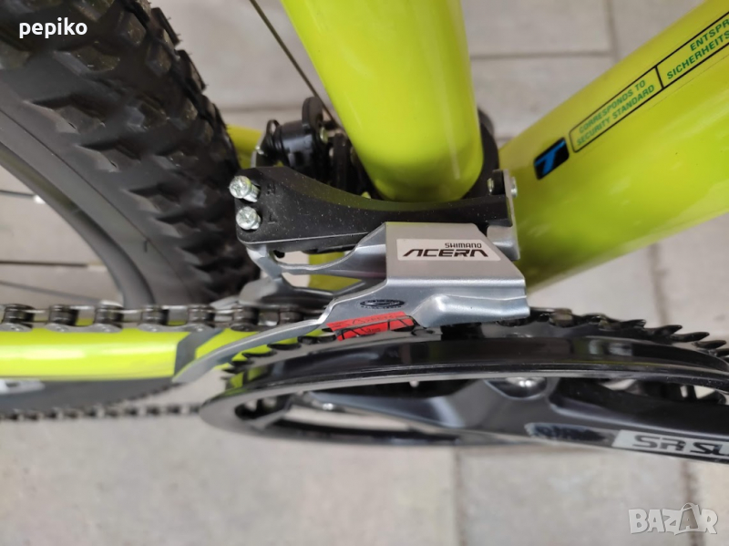 НОВ мтв алуминиев велосипед TOTEM MASTER 29 цола,олекотена алуминиева рамка от хидроформовани тръби 29 цола с 27 скорости,фиксирани палцови превключватели SHIMANO 3 X 9,средно движение SHIMANO касета,алуминиеви курбели SR SUNTOUR XCM,алуминиеви педали,преден отклонител SHIMANO ACERA,заден отклонител SHIMANO ACERA,задни венци касета на шлици SHIMANO CS-HG 200-9,предна и задна алуминиеви главини с автомати за бърз монтаж и демонтаж, RODI,алуминиево колче на седалката PROMAX,алуминиево колче на седалката,удобна спортна седалка SELLE ITALY,алуминиево кормило и лапа LINK,кормило с дължина 72 см.преден амортисьор алуминиев регулиращ се заключващ се SR SUNTOUR XCM 30 ход 100мм.силиконови грипове,дискови ротори 160 мм.предна и задна алуминиеви двойностенни усилени капли RODI CROSS COUNTRI на капси,емайлирани спици,гуми със спортен грайфер MITAS 29 х 2,25,размер на рамката 44 х 60 см.тегло 15,9 кг.отличен велосипед.