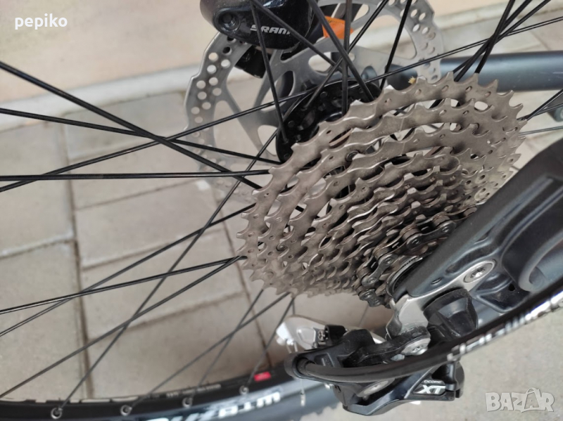 НОВ мтв велосипед ORYX SEVEN 27,5 цола,супер лека алуминиева рамка от хидро формовани тръби 27,5 цола с 10 скорости,фиксирани палцови превключватели SHIMANO DEORE 1 X 10,средно движение с изнесени лагери SHIMANO,алуминиеви курбели SHIMANO ALIVIO,преден отклонител SHIMANO ALIVIO,заден отклонител SHIMANO DEORE XT,задни венци SHIMANO 10 SPEED,предна и задна алуминиеви главини с машинни лагери NOVATEC с автомати за бърз монтаж и демонтаж,алуминиево колче на седалката,спортна седалка на релси VIPER,алуминиева лапа на кормилото KORE,алуминиево кормило 73 см.дължина,преден алуминиев амортисьор ROCK SHOX XC30 заключващ се 120 мм.ход въздушен,предна и задна ХИДРАВЛИЧНИ дискови спирачки SRAM DB5,дискови ротори 160мм.алуминиеви двойностенни усилени капли на капси,емайлирани спици,гуми със спортен грайфер SCHWALBE 27,5 х 2,25,размер на рамката 48 х 60 см.изключително лек 14,5 кг,много лек ход,прецизно превключване на скоростите отличен велосипед.