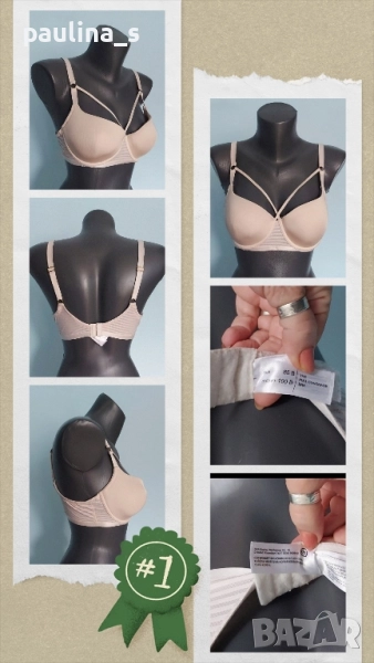 2️⃣. Колаж / L / XL / 85B - "C&A". Цената е крайна, без пазарлъци 12,5 евро. Марков сутиен с ляти чашки, банели и прекръстосани презрамки, отличен, една бройка е, без дефекти, става за посочените размери.