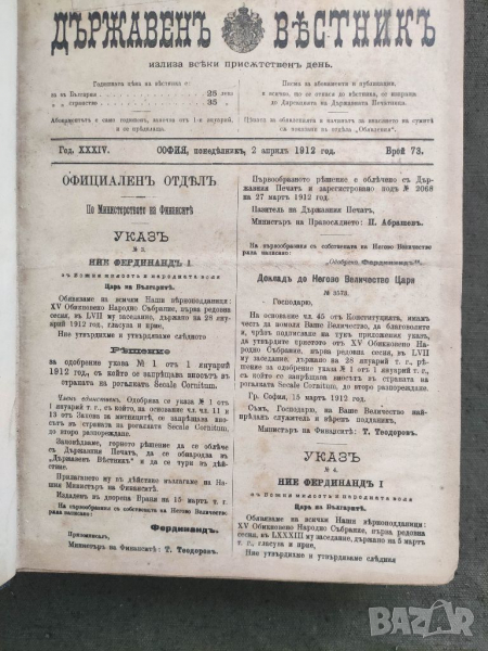 Продавам книга "Държавен вестник 1912 книга 2 → Обява 36348594