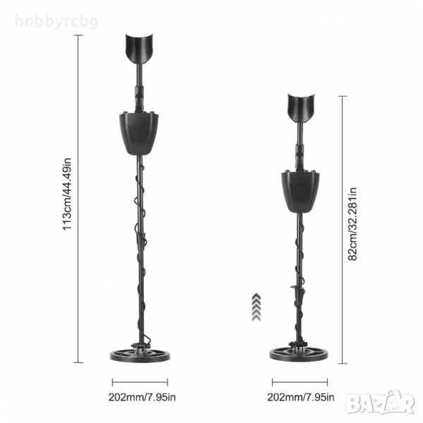 - Регулируема височина на детектора: прибл. 82 - 113 см