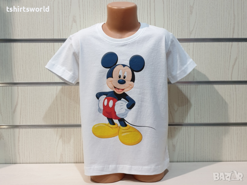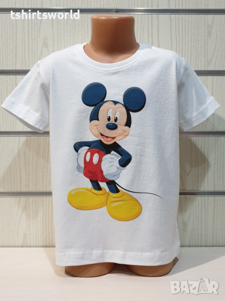 Страхотна нова детска тениска в бял цвят с дигитален печат Мики Маус. Тениската е изработена в България под марката PRINTEX от висококачествен 100% пениран памук, който запазва цялостта на материята и наситеността на цветовете дълго време. С удобна кройка, тениската е свободна и позволява максимален комфорт при носене. Професионално изработен висококачествен дигитален печат, устойчив на пране с години. Тениската може да се пере при температура до 40 градуса. Спокойно можем да гарантираме за качеството на изработката и ярките цветове на дизайна.