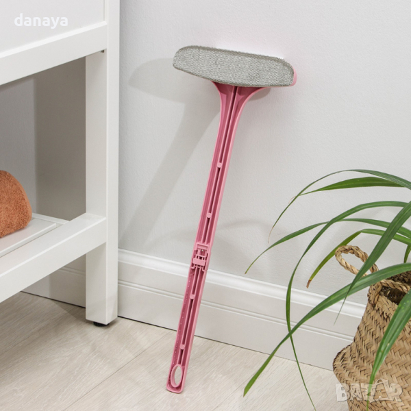 Малка стъклочистачка с подвижна пластмасова дръжка. Практичен и мултифункционален уред за почистване на стъкла, огледала, плочки в банята и други гладки повърхности. Използването ѝ е лесно. Когато не се използва може да се закачи на кука за стената. Стъклочистачът е подходящ и за почистване на автостъкла.