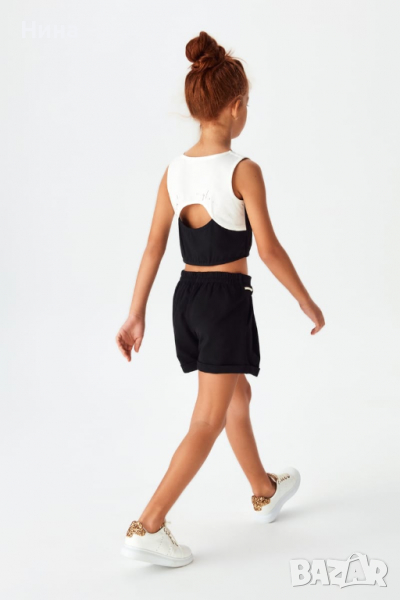 Модерно и удобно потниче- бюстие за момичета от NK, в черно- бяло- златиста комбинация 🔝 Размери: 134 см, 152 см, 158 см и 164 см 🛍️ За още моделчета разгледайте и останалите обяви в профила ми.