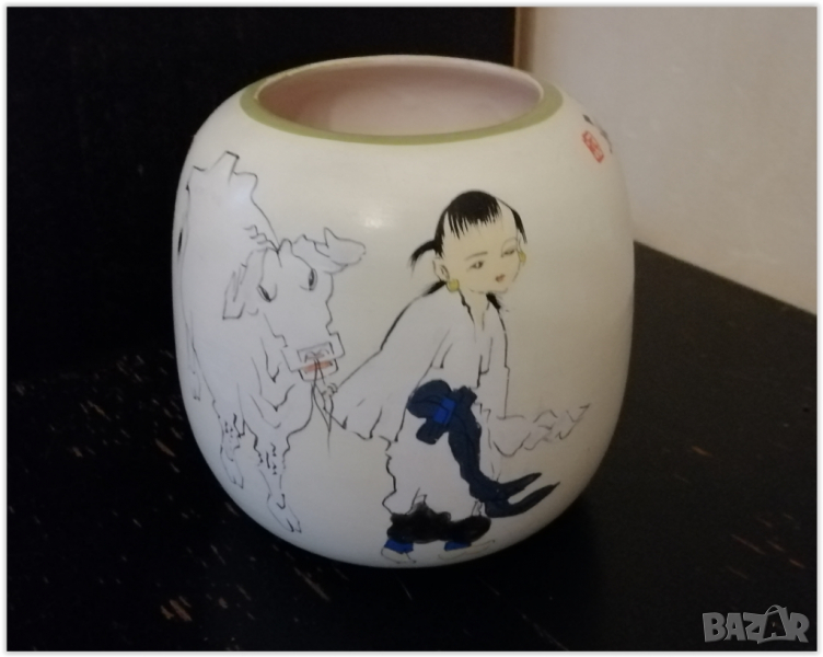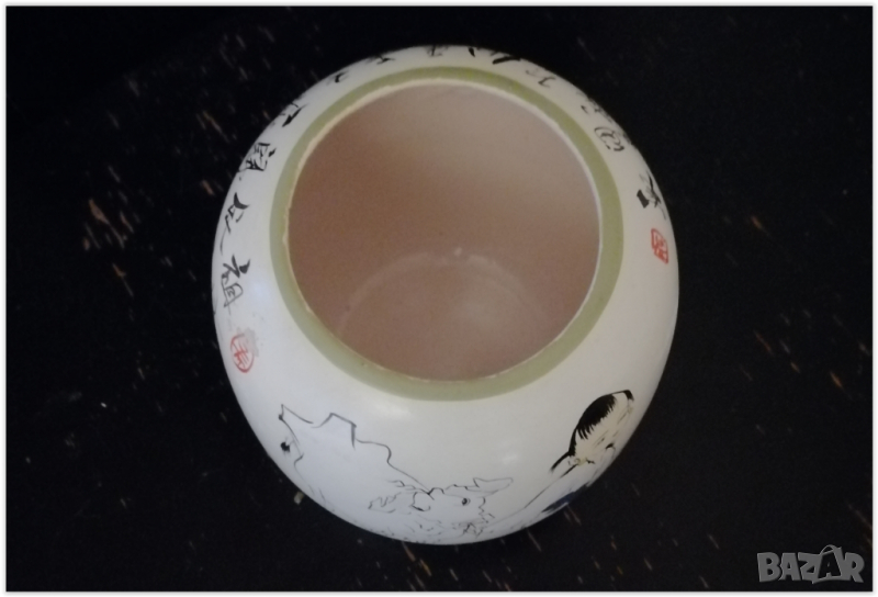 Декоративна ваза от керамика, с японски мотиви и надписи.