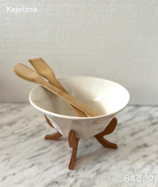 Купа с бамбукова стойка + бамбукови прибори за сервиране → Обява 36358407