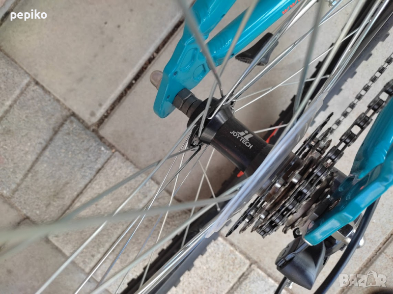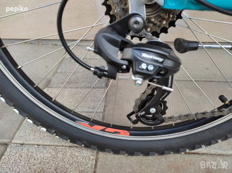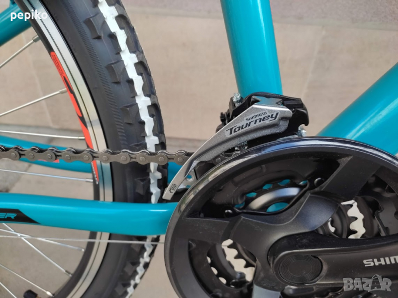 НОВ алуминиев юношески велосипед CROSS SPEEDSTER 24 цола,олекотена алуминиева рамка 24 цола с 18 скорости,фиксирани превключватели SHIMANO SL-RS 35 TOURNEY 3 х 6,средно движение касета,алуминиеви курбели SHIMANO,пластмасови педали,преден отклонител SHIMANO TOURNEY.заден отклонител SHIMANO TX35 TOURNEY,задни венци SHIMANO MF-TZ500-6,преден амортисьор ZOOM,алуминиево колче на седалката ZOOM,спортна седалка на релси COREX,алуминиева лапа,метално кормило STEEL,алуминиеви лостчета на спирачките,предна и задна алуминиеви вибрейк спирачки,алуминиеви двойностенни усилени капли,никелирани спици,предна и задна алуминиеви главини JOYTECH,гуми със спортен грайфер и два бели канта КЕНДА 24 х 1,95,размер на рамката 33 х 50см.тегло 14,9 кг.много добър ход.