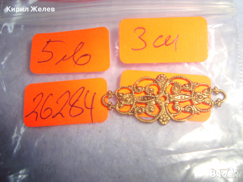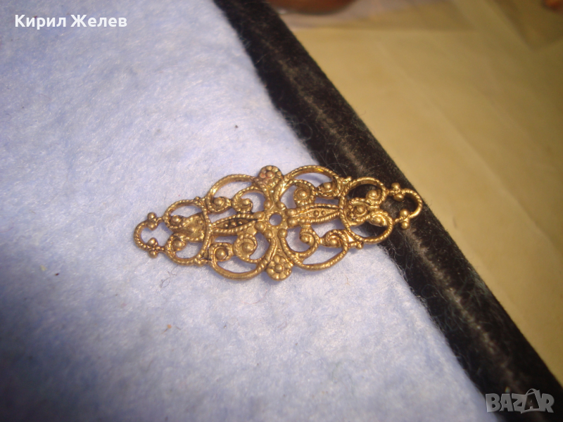 СТАРА ПОЗЛАТЕНА ФИЛИГРАННА БРОНЗОВА АРТ ДЕКО СТАРИННА АПЛИКАЦИЯ УКРАШЕНИЕ 26284